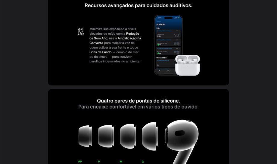 | Cancelamento de Ruído | Até 2x melhor que a geração anterior |