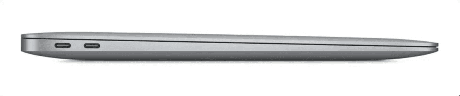 Possui duas portas Thunderbolt / USB 4 para recarga rápida e conexão de acessórios.
