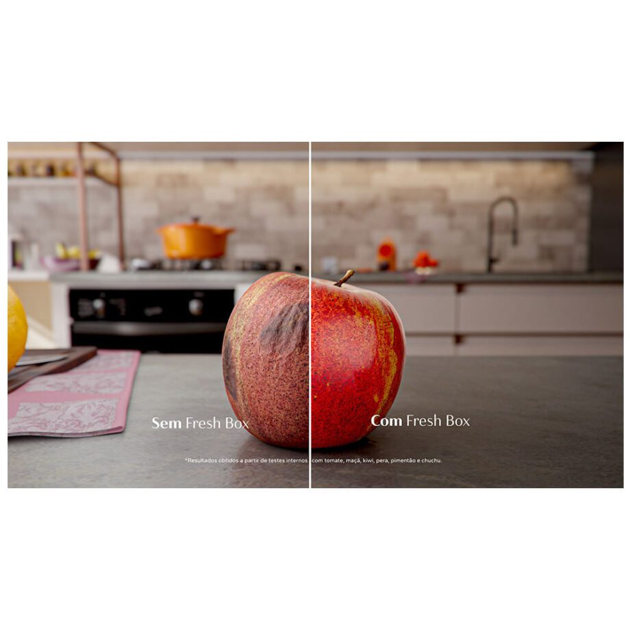 Com dimensões de 74,5P x 77,5L x 187A centímetros, a Geladeira Frost Free Brastemp Inverse 443L foi projetada para otimizar espaço em sua cozinha. Seu design invertido coloca o freezer na parte inferior, garantindo fácil acesso aos alimentos mais utilizados.
