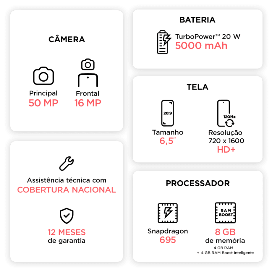 Com o processador Snapdragon 695, o Motorola Moto G34 5G 8GB garante desempenho rápido e eficiente, perfeito para multitarefas.
