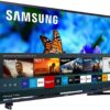 TV Smart Samsung 32 polegadas com sistema Tizen, Wi-Fi integrado, imagem HD com HDR e áudio Dolby Digital Plus. Ideal para ambientes compactos.